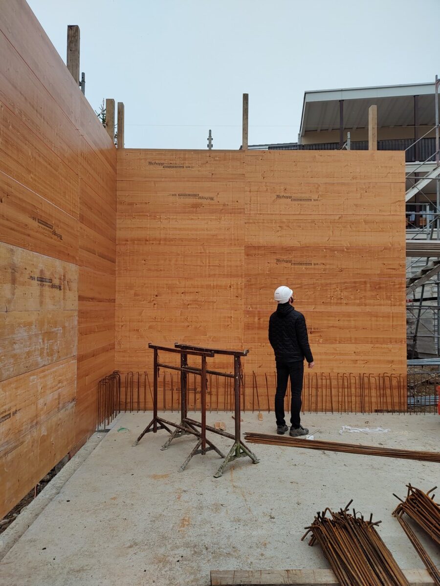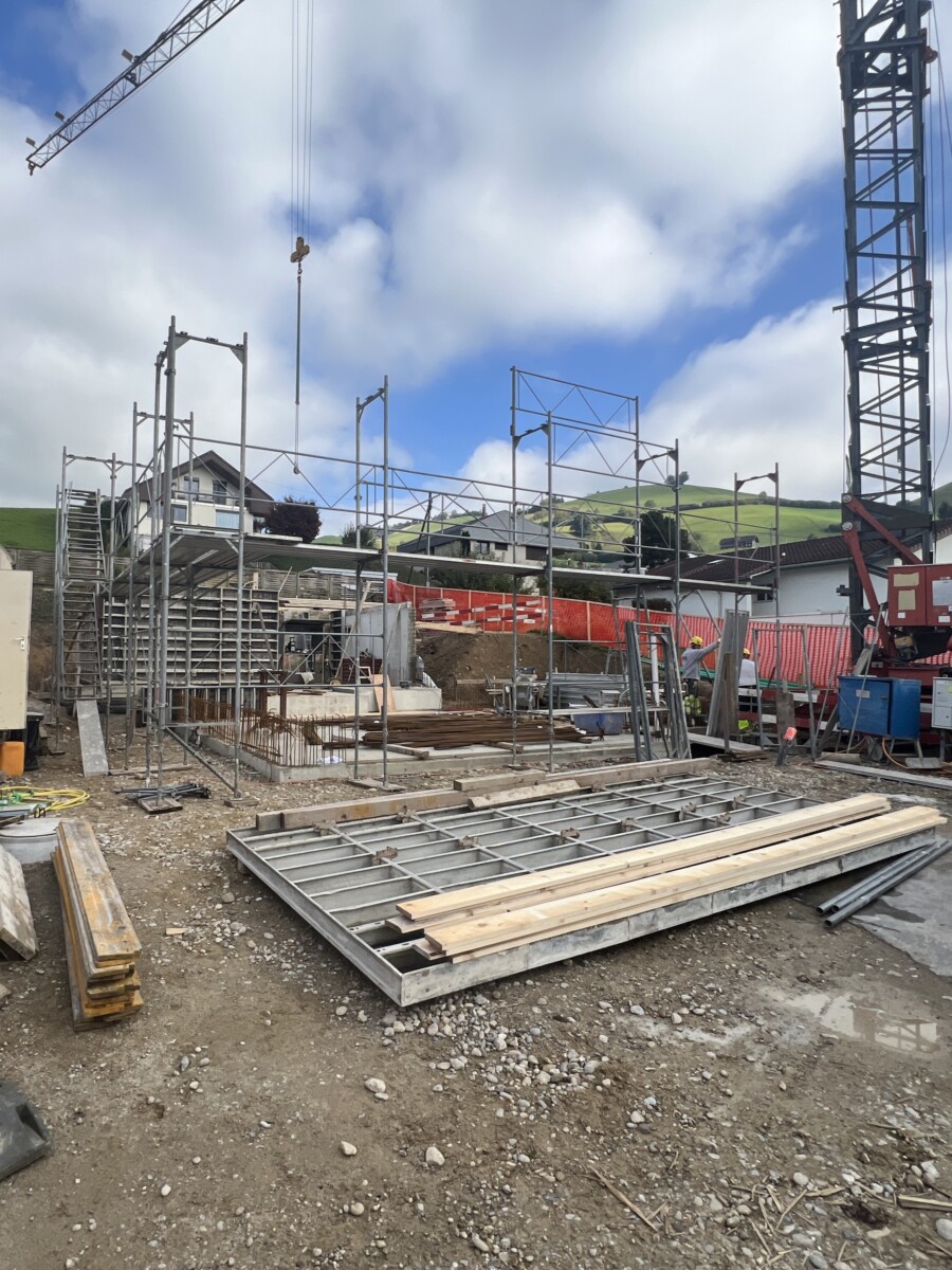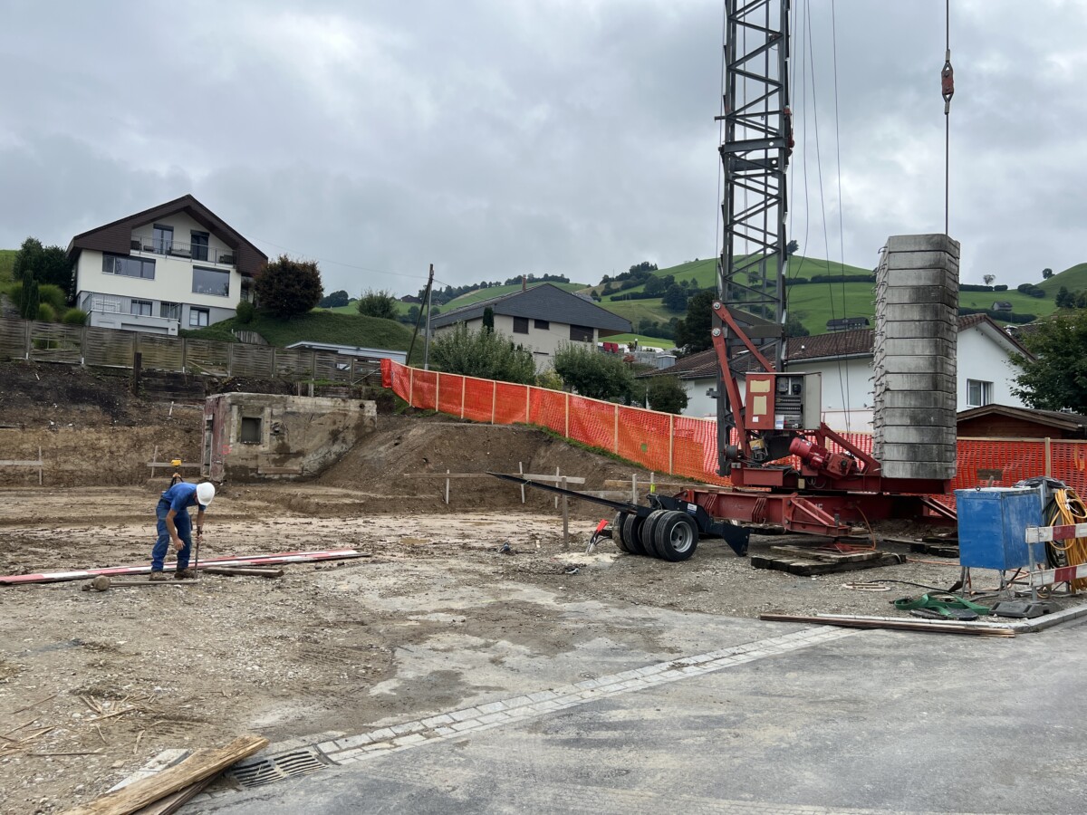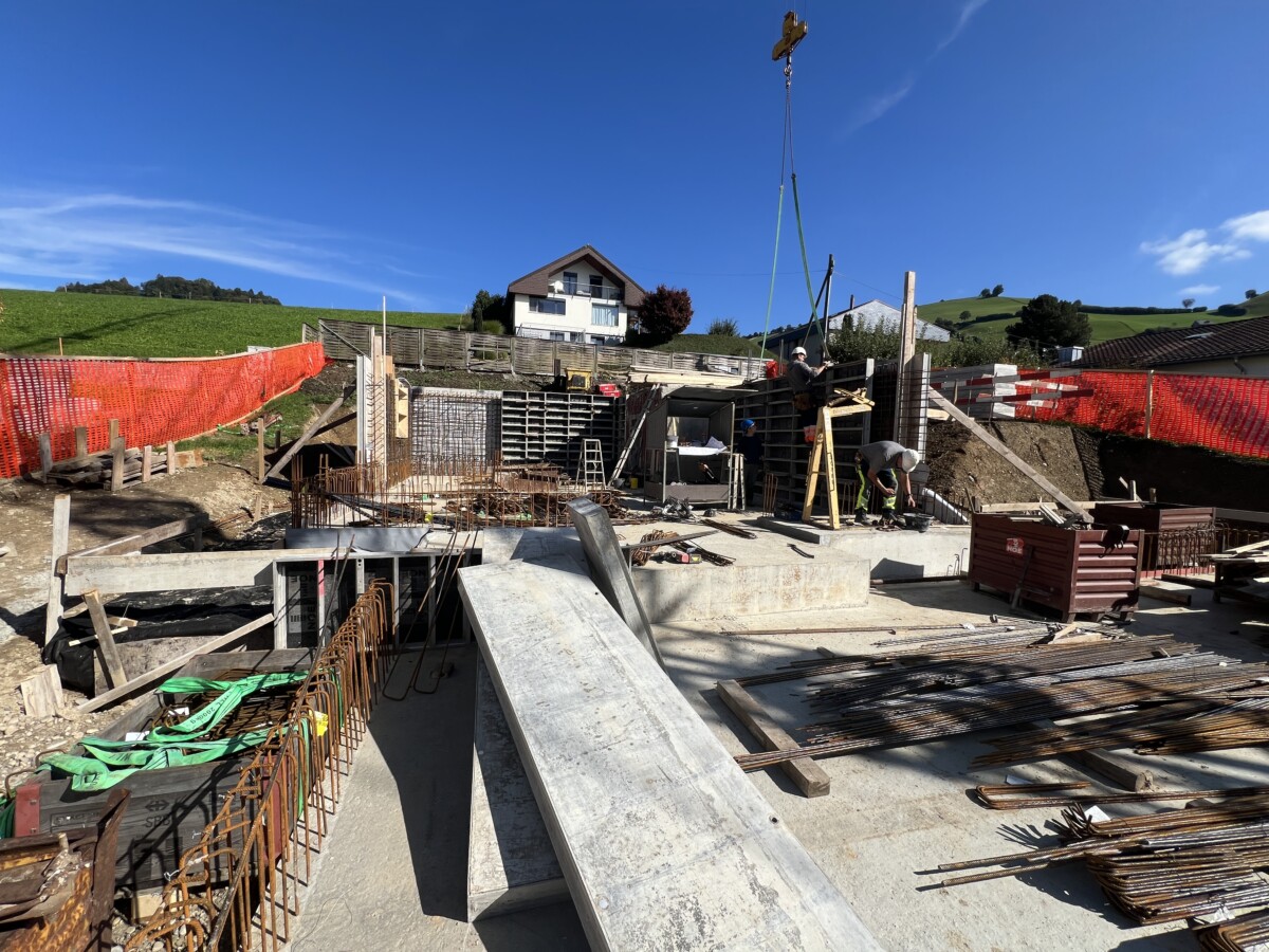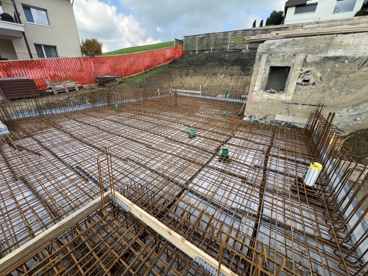 Nach erfolgreicher Eingabe für den Ersatzneubau eines grosszügigen Einfamilienhauses starteten im August die Rückbauarbeiten. Das bestehende Wohnhaus aus den späten 1950er Jahren in der Meiershalde wurde bis auf den Bunker zurückgebaut. Der bestehende Bunker wurde in die Planung integriert und dient im Neubau künftig als Kellerraum.