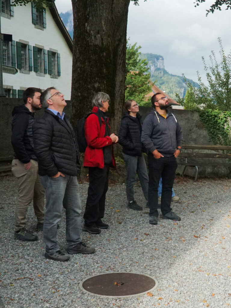 An einem nebligen Septembermorgen hatte das neue Team der e7 Architektur die Möglichkeit, ihren ersten Büroausflug zu starten. Über den Glaubenberg und den Brünigpass konnte im sonnigen Meiringen der erste Halt für ein stärkendes Znüni eingelegt werden. Im Ort wurde mit einer Führung die reformierte Michaelskirche und ihre Umgebung besichtigt. Neben dem geschichtlichen Hintergrund mit Murgängen und Dorfbränden konnte der Turm mit seinem über hundertjährigen Uhrwerk und die Ausgrabung unter der Kirche erkundet werden.