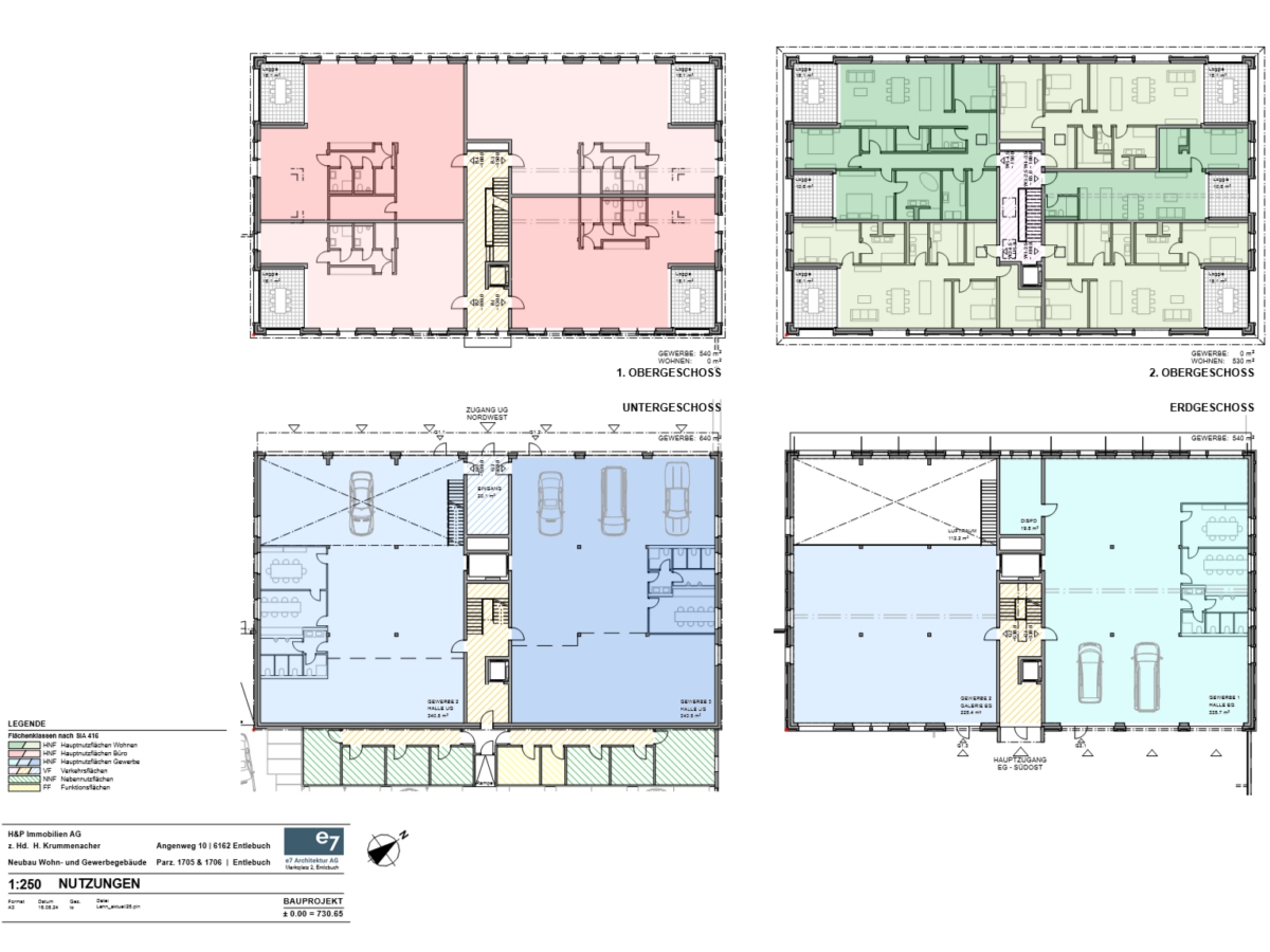 Die Woh­nun­gen im 2.Obergeschoss erhal­ten einen hochw­er­ti­gen Aus­bau­s­tan­dard. Im 1.Obergeschoss kön­nen Büroflächen indi­vidu­ell aus­ge­baut wer­den. Log­gias in den Gebäudeeck­en des Wohn- und Büro­geschoss­es gewährleis­ten einen gedeck­ten Aussen­bere­ich. Die Gewer­be­flächen im Erd- und Untergeschoss sind indi­vidu­ell gestalt- und ausbaubar.