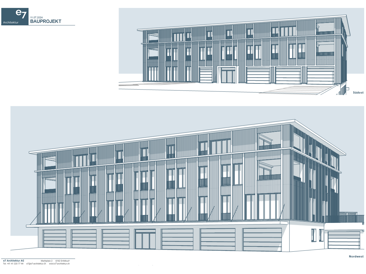 Die Baueingabe für den Neubau des Wohn- und Gewer­bege­bäudes im Lehn in Entle­buch ist erfol­gt. Das Pro­jekt unter­liegt dem Gestal­tungs­plan «Lehn» und wird begleit­et durch den Fach­beirat Entle­buch zur Fas­saden- und Umge­bungs­gestal­tung. Mit dem viergeschos­si­gen Neubau entste­ht ein vielfältiges Ange­bot an Werkstatt‑, Lager- und Dien­stleis­tungs­flächen, sowie Wohnungen.