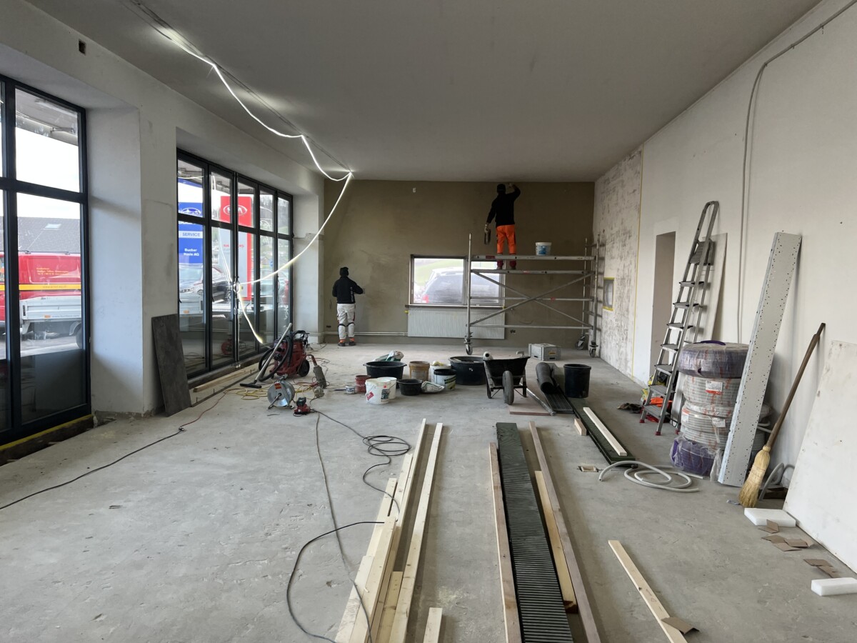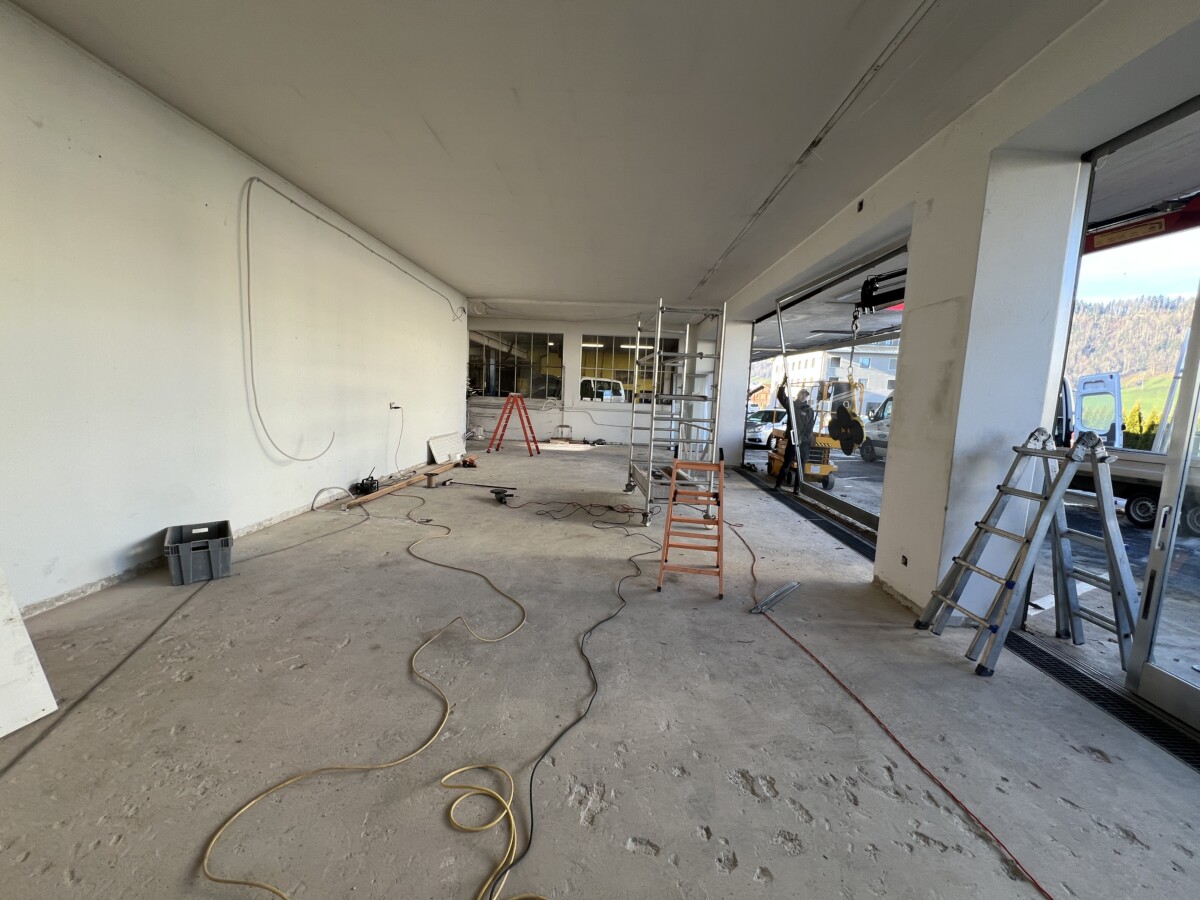 Das Erschei­n­ungs­bild des Gebäudes wird von Aussen aufge­frischt. Im Innen­raum wird der Show­room der Fahrzeuge erneuert. In der Gestal­tung und Far­bge­bung wird mit der Autovertre­tung zusam­men gearbeitet.