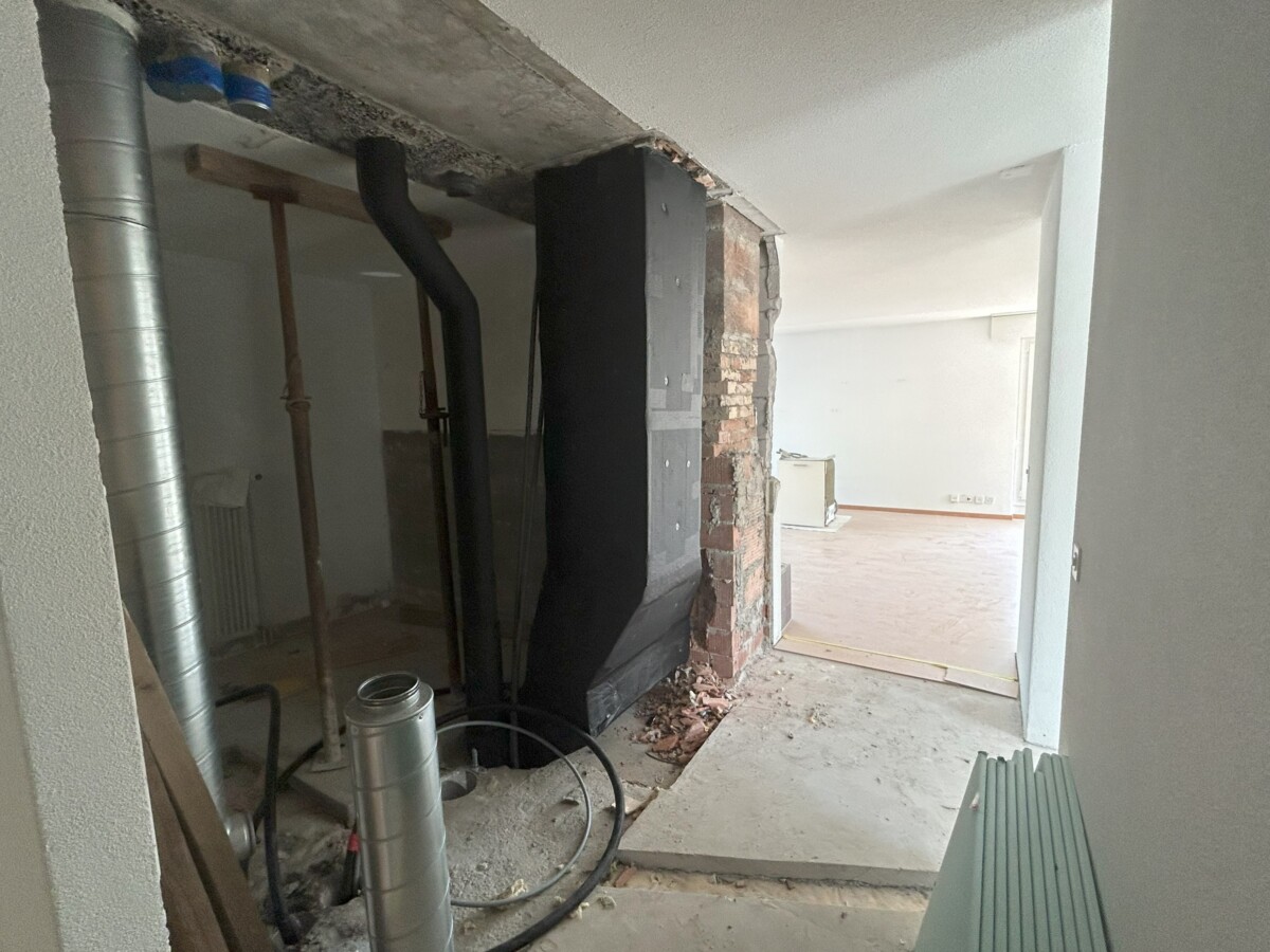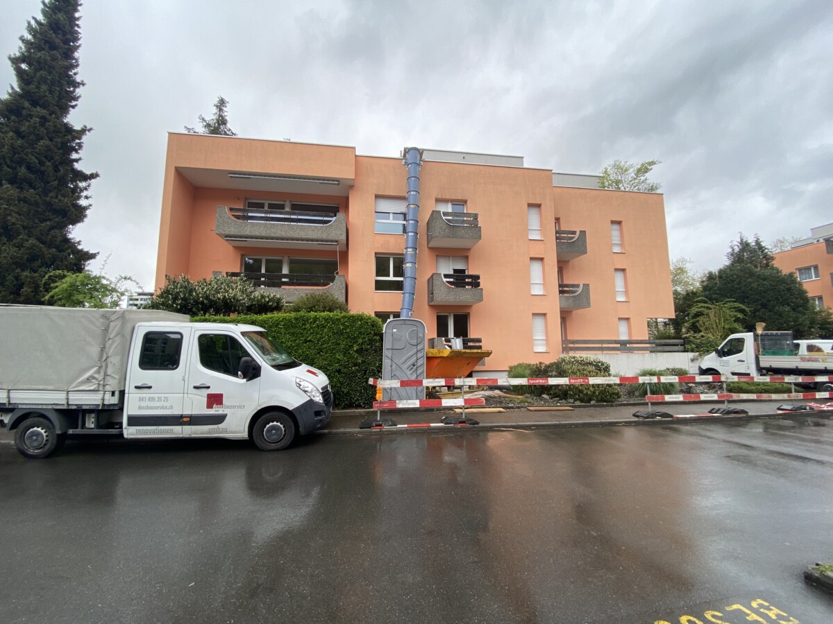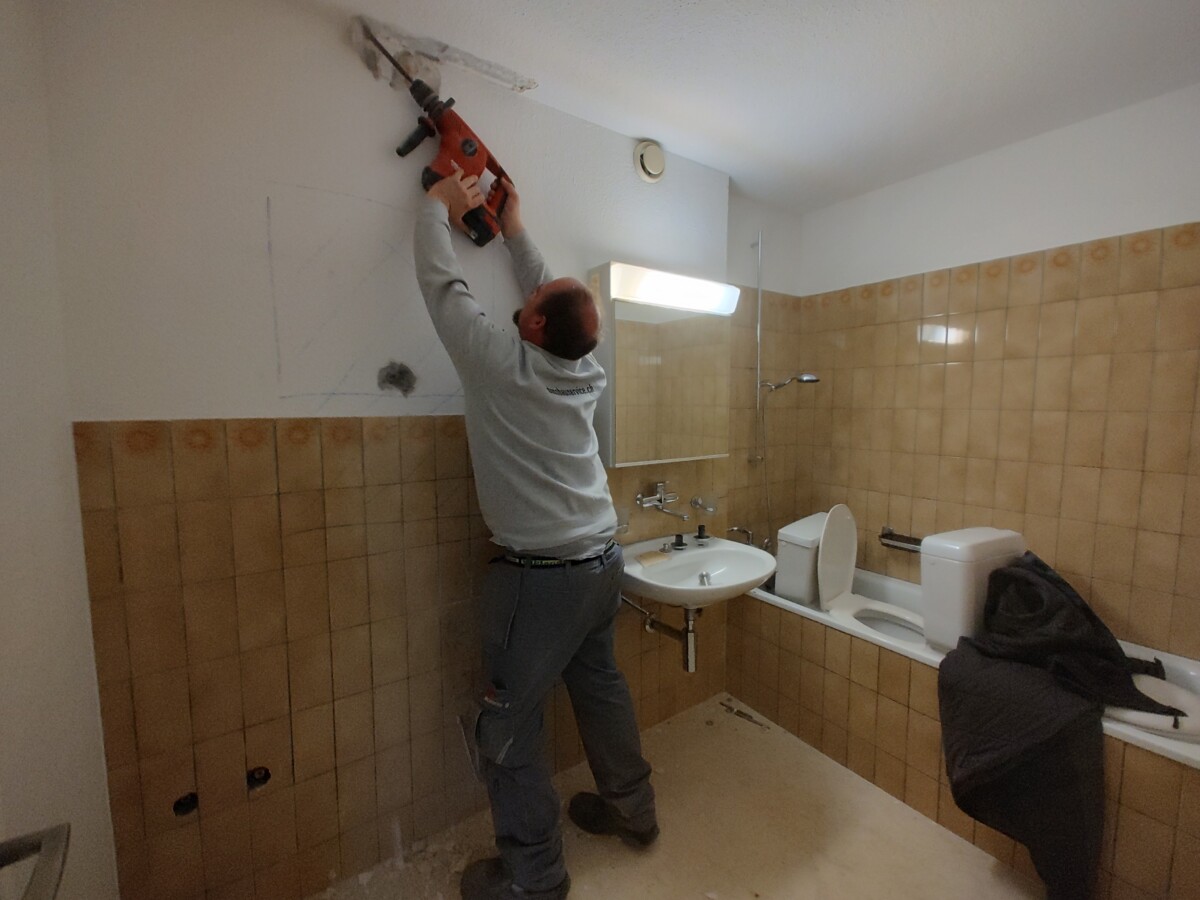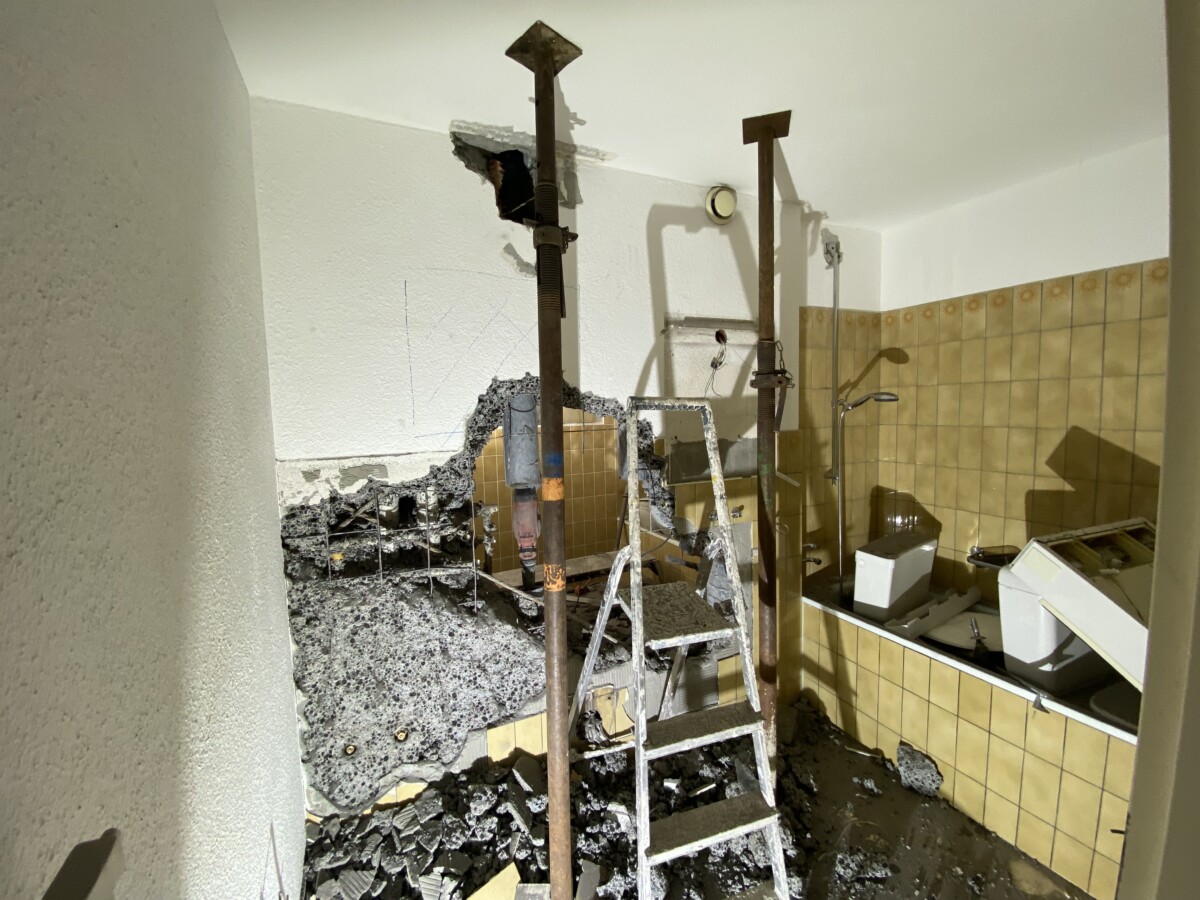 Die Wasserleitungen im Objekt sind in die Jahre gekommen. Folglich wird im Gebäude eine sogenannte Strangsanierung durchgeführt, bei der sämtliche Wasserzu- und ‑ableitungen saniert werden. Gemäss dem Sanierungskonzept werden Zwischenwände und Leitungen abgebrochen, um anschliessend Badezimmer und Küchen zu erneuern.