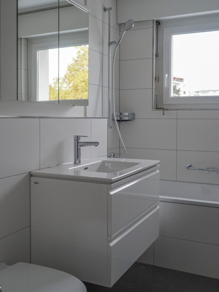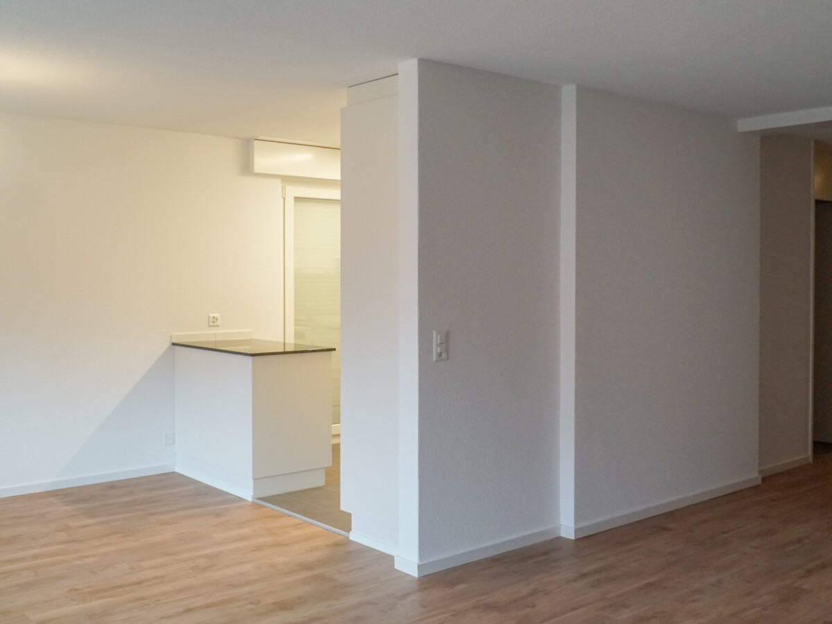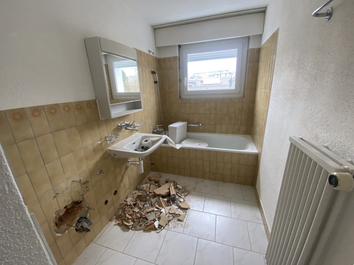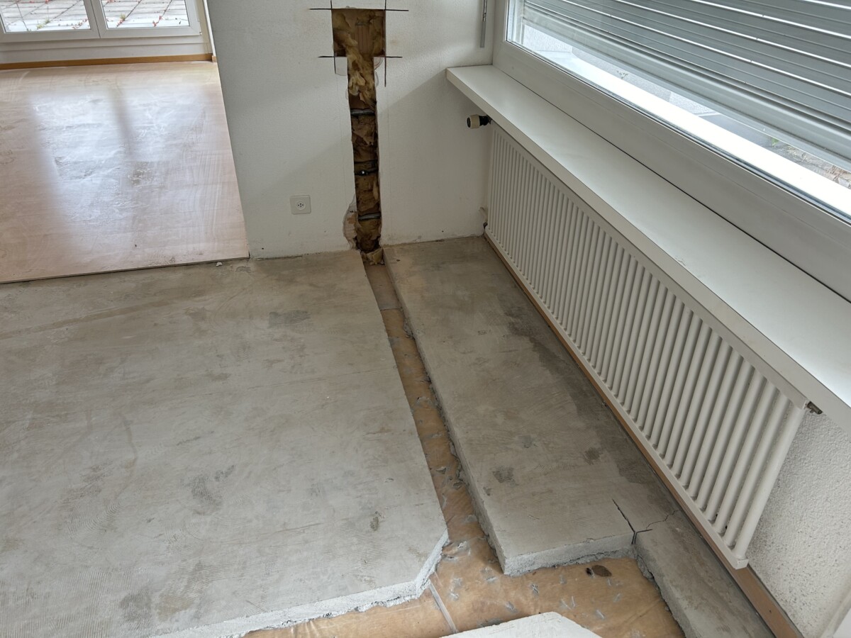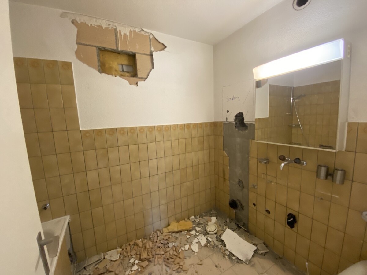 Die Wasserleitungen im Objekt sind in die Jahre gekommen. Folglich wird im Gebäude eine sogenannte Strangsanierung durchgeführt, bei der sämtliche Wasserzu- und ‑ableitungen saniert werden. Gemäss dem Sanierungskonzept werden Zwischenwände und Leitungen abgebrochen, um anschliessend Badezimmer und Küchen zu erneuern.